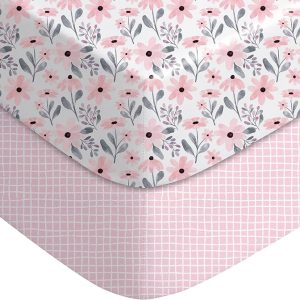 Yoofoss Pack and Play Sheets Girl 2 Pack, 38×26 Mini Crib Sheets Fitted for Baby Compatible with Graco Pack n Play Mattress,Ultra Soft Breathable Microfiber Pink Floral