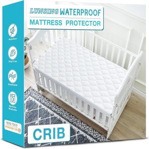 Lunsing Waterproof Crib Mattress Protector, Soft Breathable Crib Size Mattress Pad Cover, 3-10 inches Deep Pocket, White
