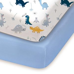Pack and Play Sheets Fitted, Dino Animals Blue, Soft and Stretchy, Hypoallergenic and Safe, 2 Pack for Mini Crib and Pack N Play