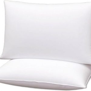 Squishy Flat Bed Pillows Queen Size Set of 2 Extra Soft Thin Pillow for Stomach Sleeping Adults Kids Back Sleeper Plush Fluffy White 20×30 inches