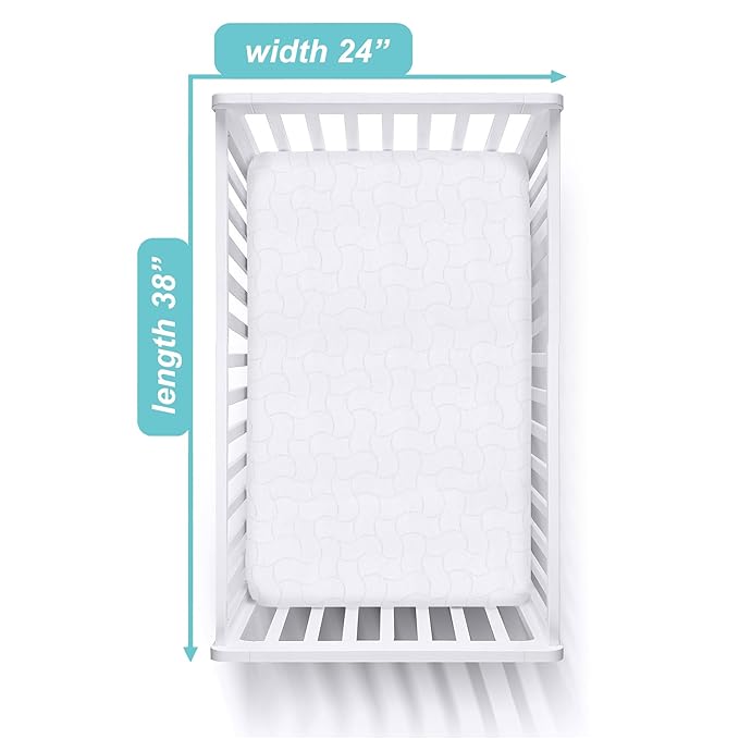 - Perfect Fit for Porta/Mini Cribs: Designed to fit Pack and Play and Mini Crib Mattress mattresses, this protective cover measures 38″ x 24″ x 5″ and securely fits mattresses up to 3″ thick. Reinforced deep corners with all-around elastic provide a snug, secure fit.