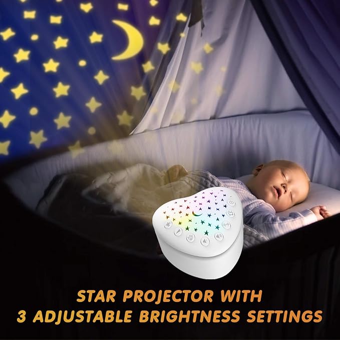 BEREST A13 White Noise Machine & Baby Sleep Soother with 15 Soothing Sounds & Projector Star Night Light, Cry Sensor, Rechargeable Lithium Battery, Portable for Baby, Toddlers, Attaches to Crib