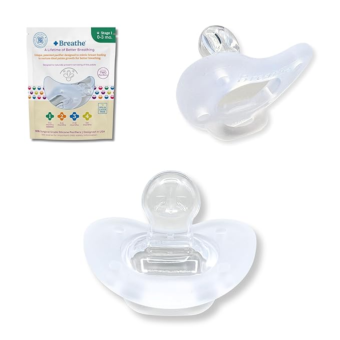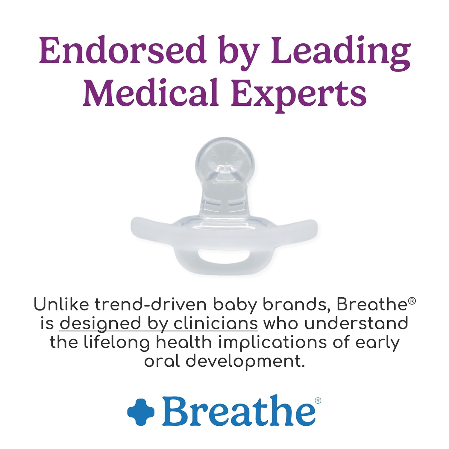 - Supports Natural Growth from the Start – Breathe Pacifiers feature a unique, patented design to mimic how breastfeeding encourages natural development of the palate and facial structures. We think it’s better to do everything possible to prevent future oral and facial development problems than to put children through the discomfort of trying to fix oral problems with expanders and braces later.