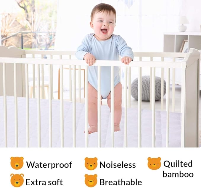 - ULTRA-SOFT QUILTED SURFACE: The quilted terry cloth top is so soft and luxurious it is almost a shame to cover it with a sheet and it feels like your baby could almost sleep directly on it! The ideal solution for keeping your mattress clean and fresh.