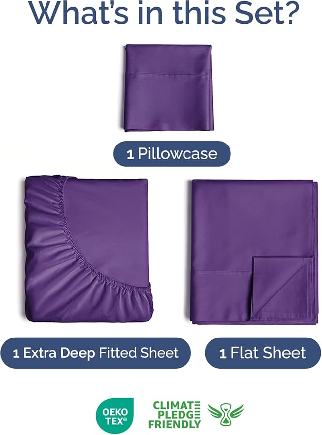 - 3 PIECE SHEET SET: This bed sheet set comes with 1 pillowcases total. The pillowcases feature secure enclosure designs to keep pillows neatly in place. This bedding set is crafted with deep pockets to fit your extra thick mattress perfectly, combining softness, durability, and easy care.
