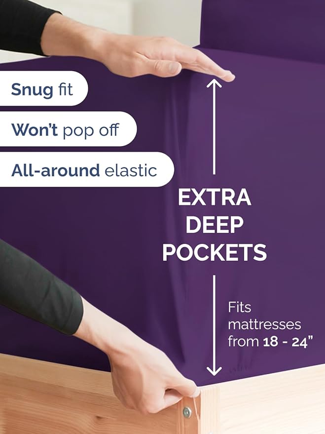 - EXTRA DEEP POCKET TWIN XL SHEETS / EXTRA DEEP FITTED TWIN XL SHEETS: These bed sheets are for very deep pocket mattresses. They fit any mattress with pockets that are 18, 20-, 21-, 22- and 24-inches deep mattresses. There’s a stretchable elastic around the extra deep fitted sheet which stretches for a nice tug around your mattress. Perfect for extra tall & large mattresses. Rest assured these oversized sheets will stay on tight & stay in place!