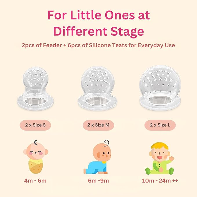 - ★ ALL SIZES INCLUDED – 2 x Feeders and Bonus pack of 4 silicone sacs / teats for different ages of baby/toddlers. (2 Large Sizes Sacs are pre-packed with Feeders. Additional 2 Small Sizes and 2 Medium Size included for parents to have more options). We value you and your baby’s comfort and convenience. Unlike other feeders which do not provide different sizes, we recommend customers to use an appropriate size for your little ones.