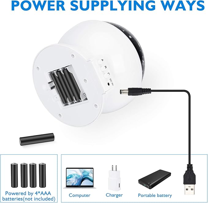 - 9 kinds of dreamy color modes: 4 LED beads warm yellow, blue, red and green and multicolored with 9 different light modes. The base rotates quietly and spreads the colorful universe. Find your own constellation sign