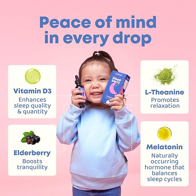 • Restful nights and cheerful mornings – Try Baby melatonin The gentle ingredients in this melatonin liquid for kids promote relaxation and improved rest. Wind down from the day, naturally using toddler melatonin 2-year-old kids will love!
