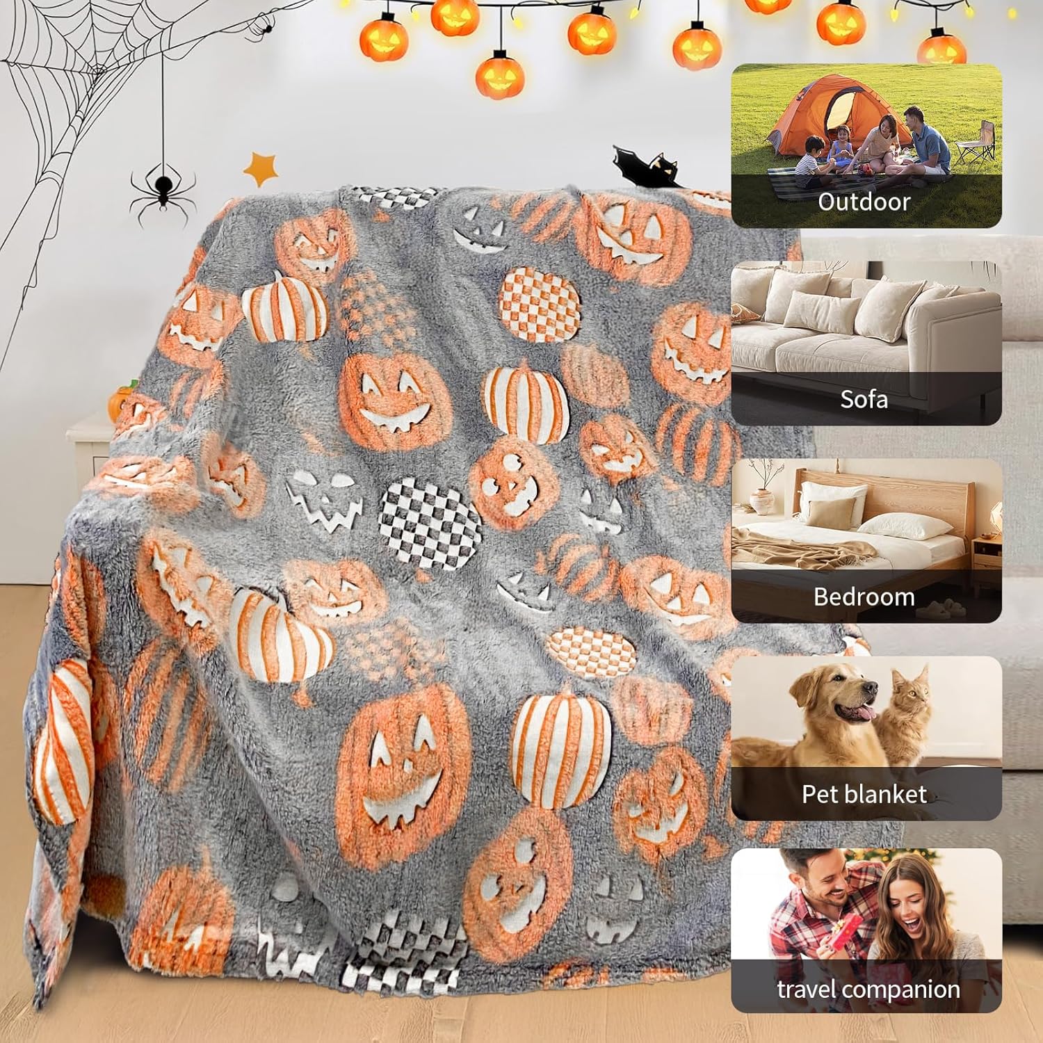 - Glow in the Dark Blanket: Our glows in the dark Halloween blanket, simply expose the Halloween blanket to bright light for 15 minutes, then turn off the light and magical things will happen.