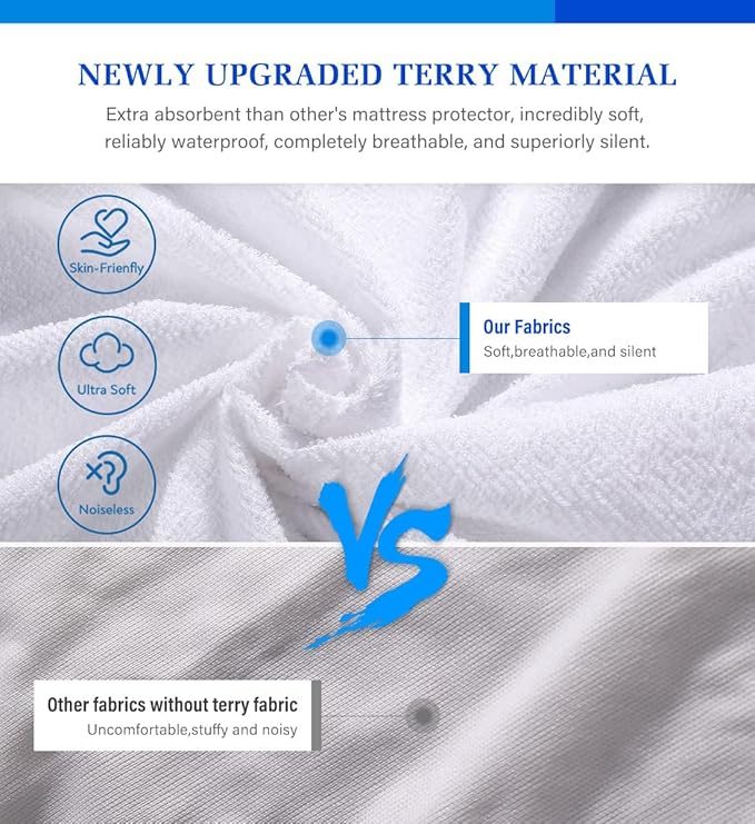 - 【Noiseless & Comfortable 】The terry surface allows air and heat to pass through, ensuring softness and great breathability. The specially designed waterproof TPU membrane is made of quality elastic material that is ultra-soft and flexible, and will not cause the rubbery, swishing sounds that other twin mattress protector for kids may do.