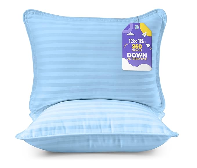 Utopia Bedding Toddler Pillow (Light Blue, 2 Pack) 13×18 Pillows for Sleeping, Soft and Breathable Cotton Blend Shell, Small Kids Pillow Perfect for Toddler Bed and Travel (Intended for Age 2 and up)