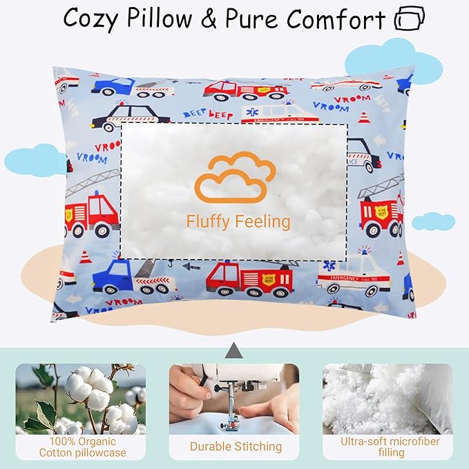 - PACKAGE INCLUDE: 1 toddler pillow 13×18 and 1 toddler pillowcase 14×19, after opening the package, please wash and dry the pillow to regain its fluffiness