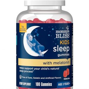 Mommy’s Bliss Kids Sleep Melatonin Gummies, No Artificial Colors, Flavors or Gelatin, Strawberry Flavor, Age 3+, 100 Gummies (Packaging May Vary)