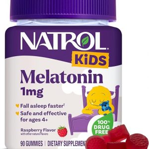 Natrol Kids Melatonin Gummies 1mg, Children’s Melatonin for Restful Sleep, 90 Raspberry-Flavored Sleep Gummies, 90 Day Supply