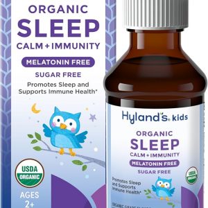 Hyland’s Kids Melatonin-Free Organic Sleep Calm & Immunity Liquid, Sugar-Free with Magnesium, Vitamin D, Zinc & Elderberry, Promotes Sleep & Supports Immune Health, Ages 2+, Grape Flavor, 4 Fl. Oz.