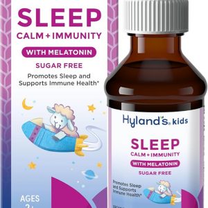 Hyland’s Kids Sleep Calm & Immunity with Melatonin, Sugar-Free Sleep Aid Liquid with Magnesium, Vitamin D, Zinc & Elderberry, Promotes Sleep & Supports Immune Health, Ages 2+, Grape Flavor, 4 Fl. Oz.